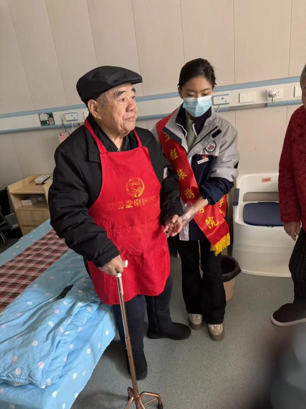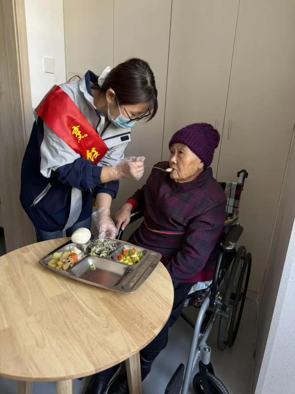 饭菜飘香之时,另一份温暖的陪伴也在同步进行。同学们细心地将餐食送至老人房间,耐心地为需要帮助的长者喂饭。一勺一筷之间,流淌的是无声的尊重与关爱。