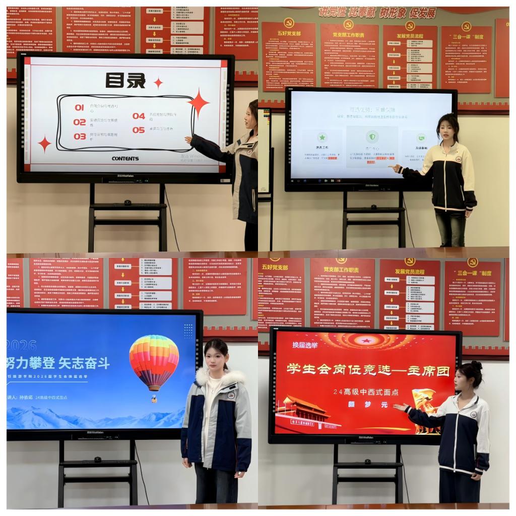 3月18日,烹饪旅游学院2026年学生会竞聘仪式在7-301会议室隆重举行。来自学院18位优秀学生骨干同台竞技,以饱满的热情和务实的规划,共同描绘新一年学生工作的美好蓝图。